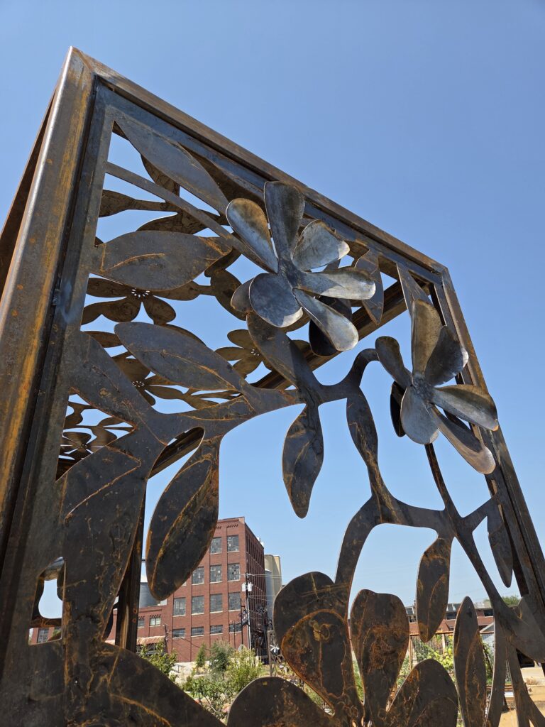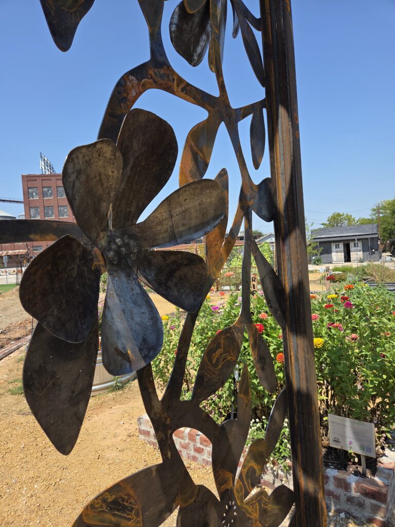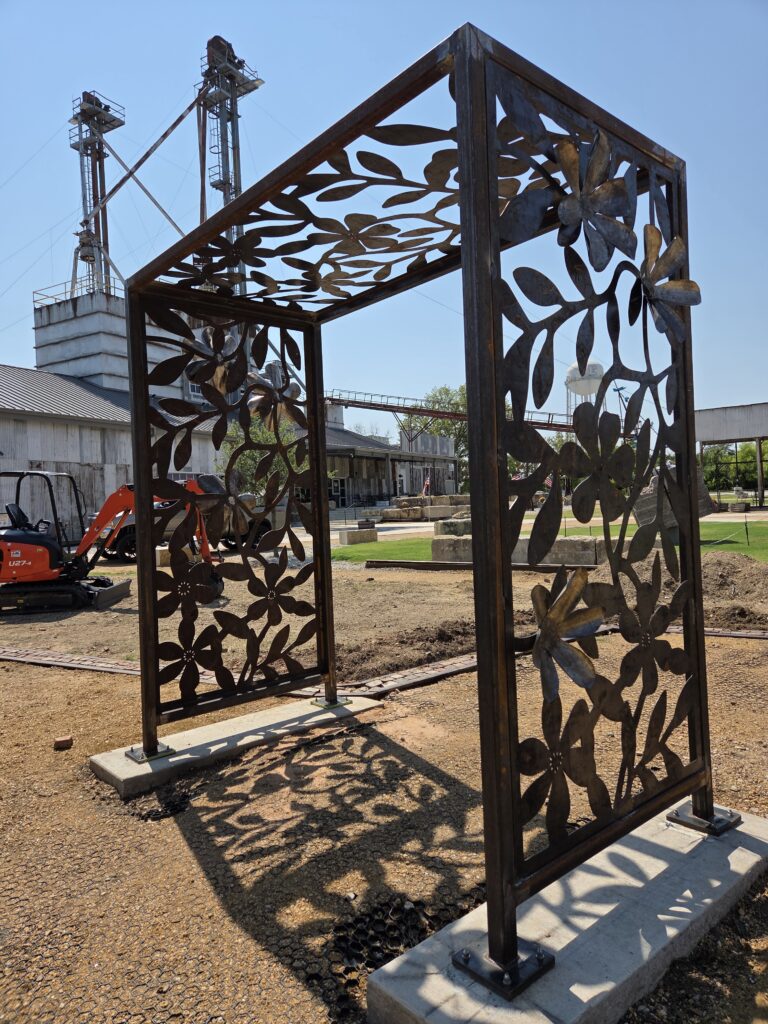 These trellis' make excellent entryways for the Easy McKinney learning garden. Thanks to Alli K Design for sending the design our way and hiring us to fabricate these for the garden. The 3D flowers were an excellent addition to give the panels some depth.